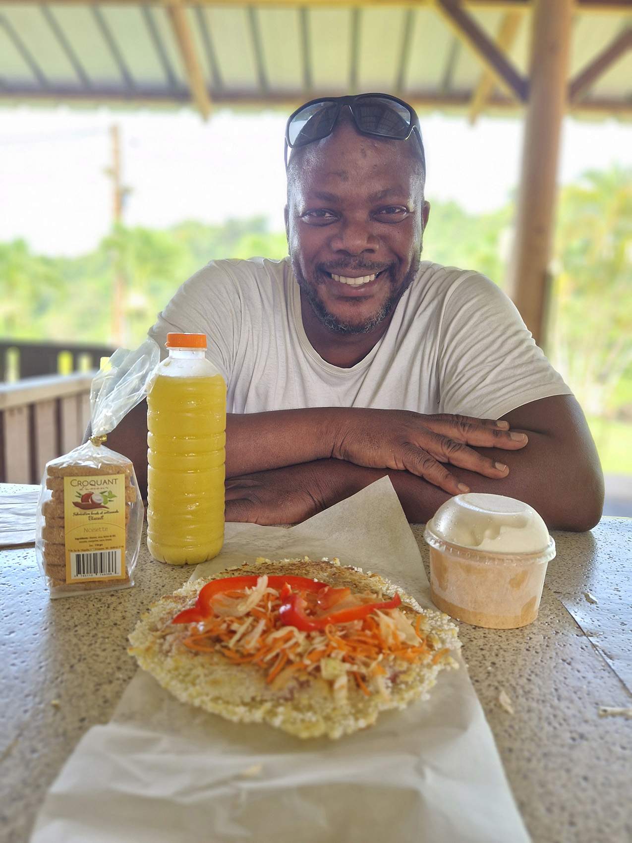 L'équipe TI-KABET allie tradition et créativité en proposant des recettes originales comme les pizzas à la farine de manioc, les wraps généreux, les biscuits artisanaux, les sorbets rafraîchissants ou encore le K’rousti, un muesli local à base de moussache (amidon de manioc).